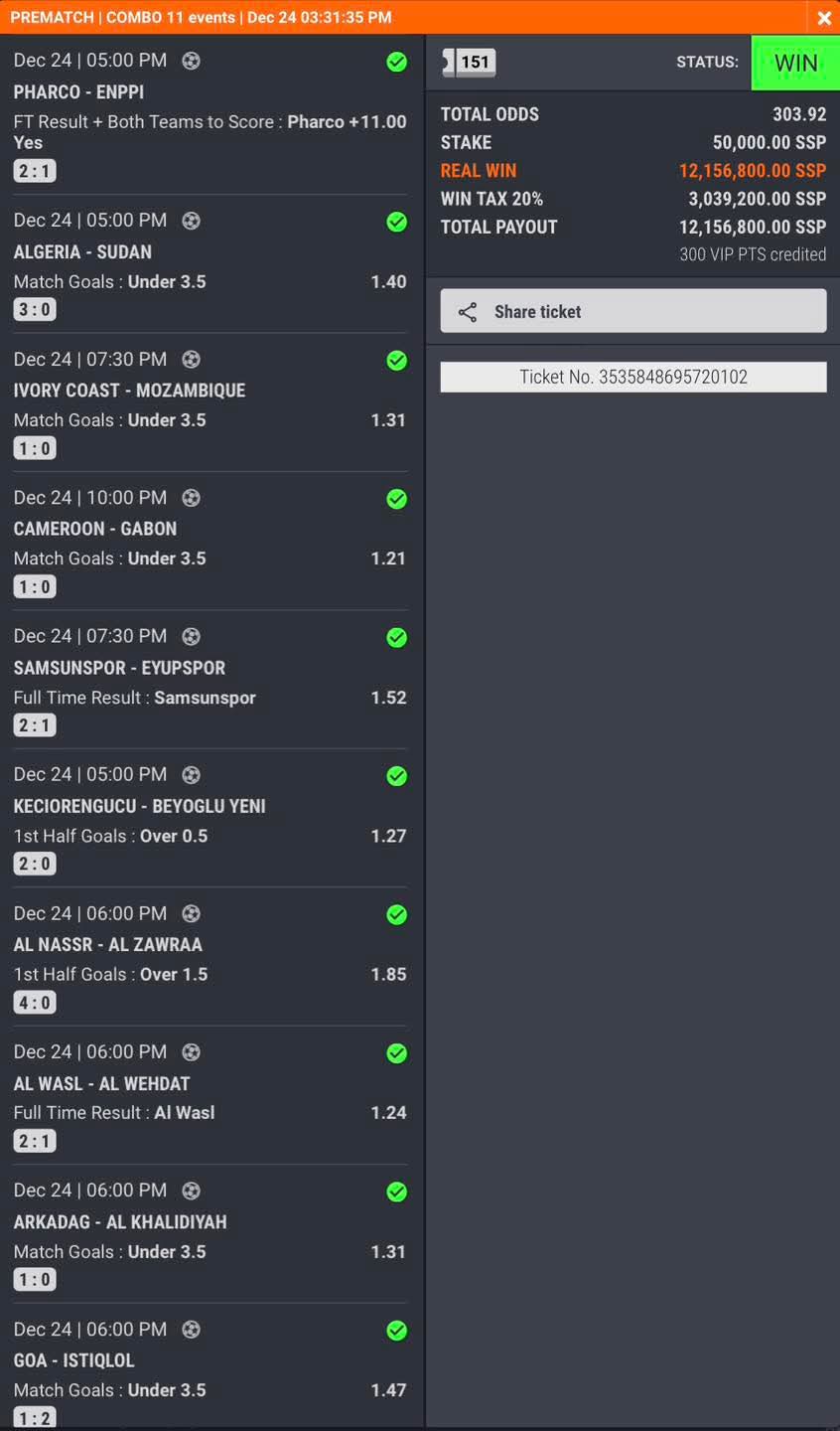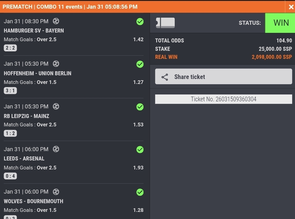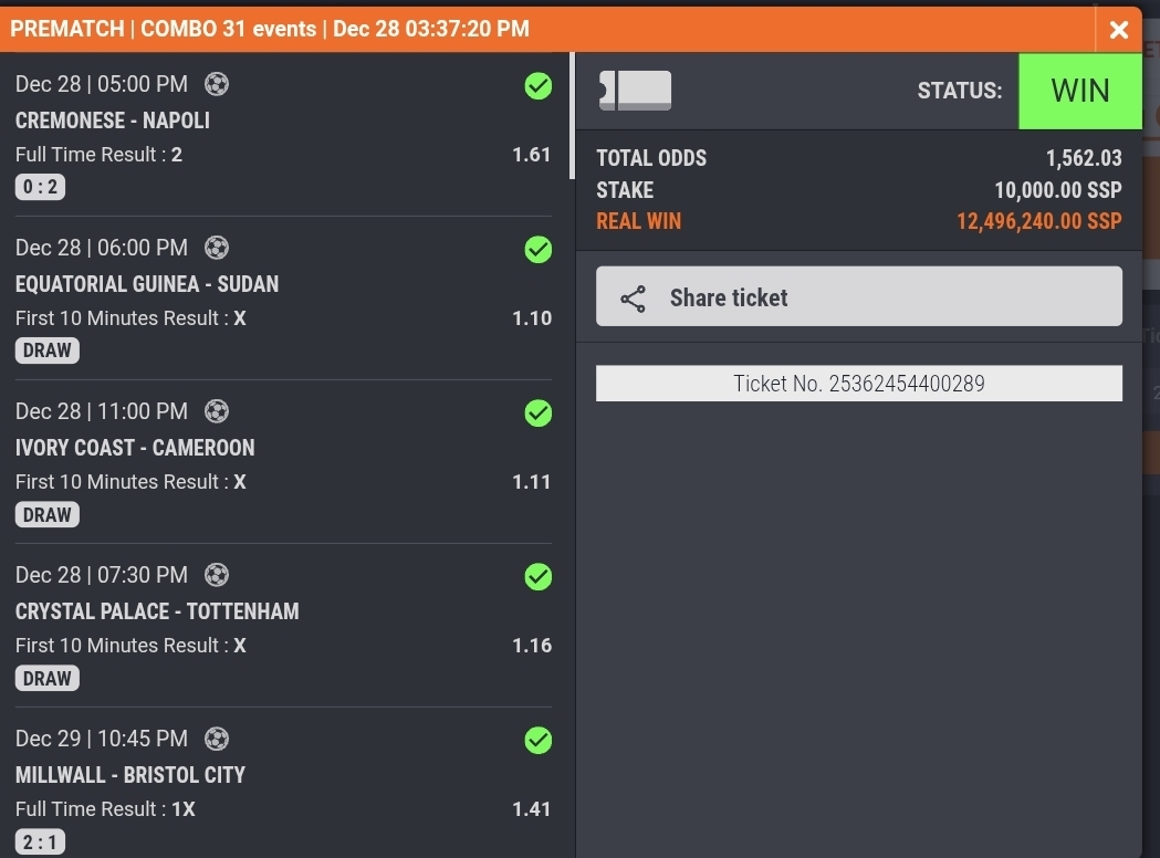 What a way to seal 2025 and welcome 2026! From a stake of 50,000 SSP, this punter created a wonder…