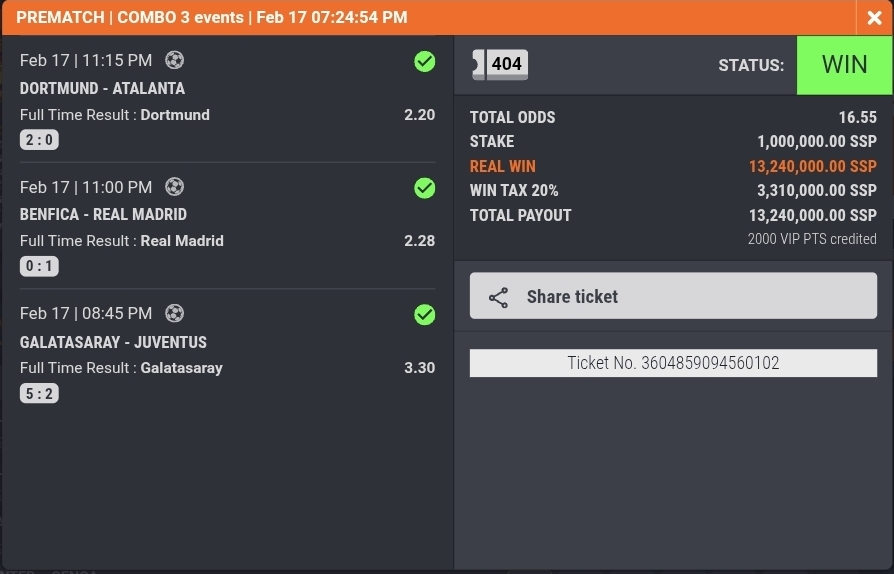 From a list of 22 sure-win matches, our winner of the week walked away happily with his valentine’s budget sorted…